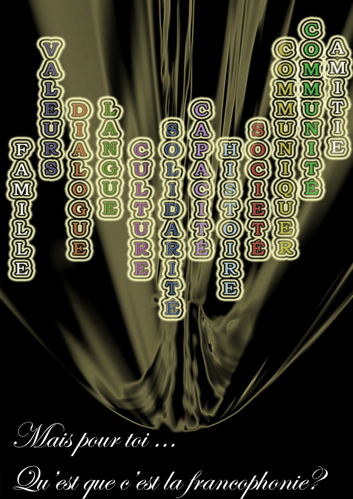 La Francophonie est comme un puzzle: les différentes communautés des personnes de nationalité, d'appartenance ethnique ou religieuse différente, qui forment un tout, une image. Elle peut être aussi comparée avec un génome - groupe de chromosomes génétiquement différents qui forment une unité.